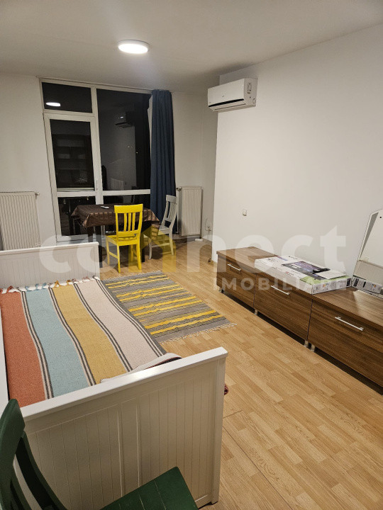Apartamentul este foarte bine compatimentat, are bucataria separata, baie cu dus, aer conditionat, balcon si dormitor separat.