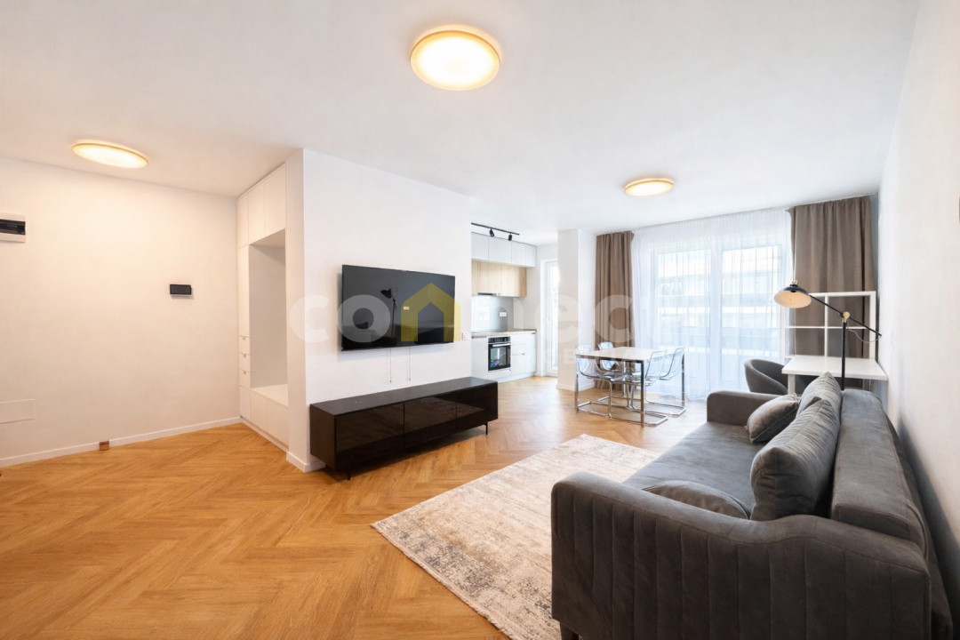 • Mobilier nou, în stil modern-minimalist, cu finisaje calde și materiale de calitate.