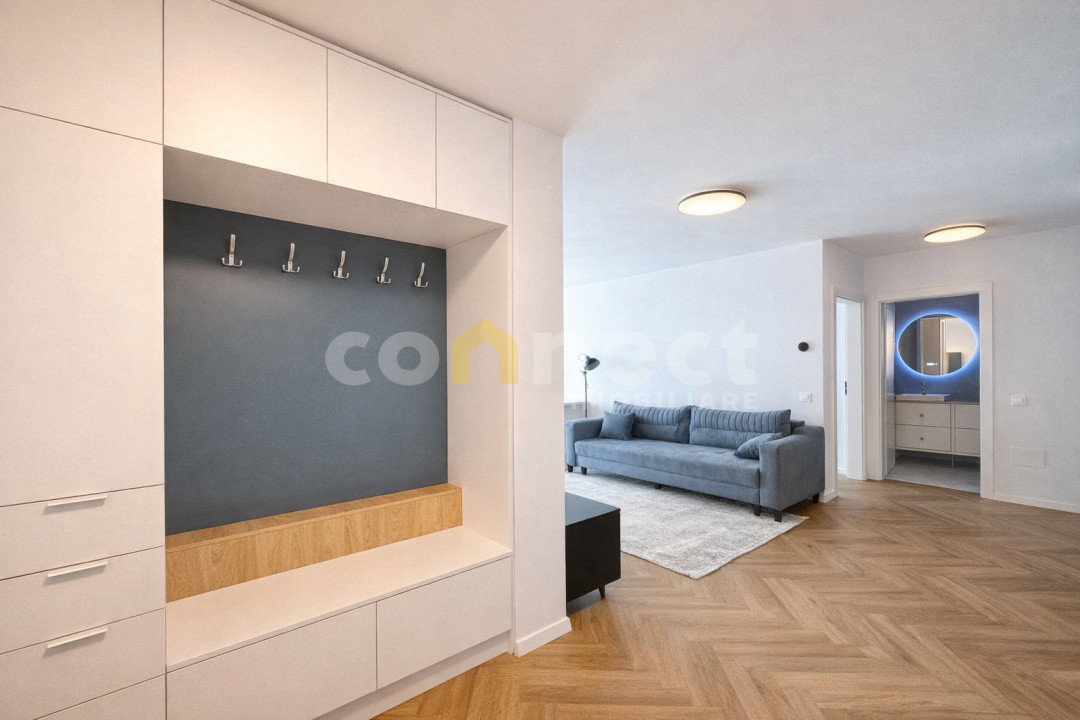 • Hol de intrare cu dressing mare și practic – loc suficient pentru haine, încălțăminte și tot ce vrei să fie la îndemână.