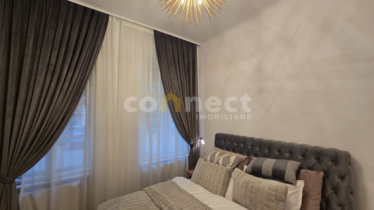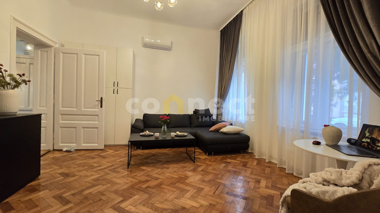 Se vinde acest apartament cu 2 camere, totul nou, cu centrala proprie, in centru, in Oradea, situat la parterul unei case!