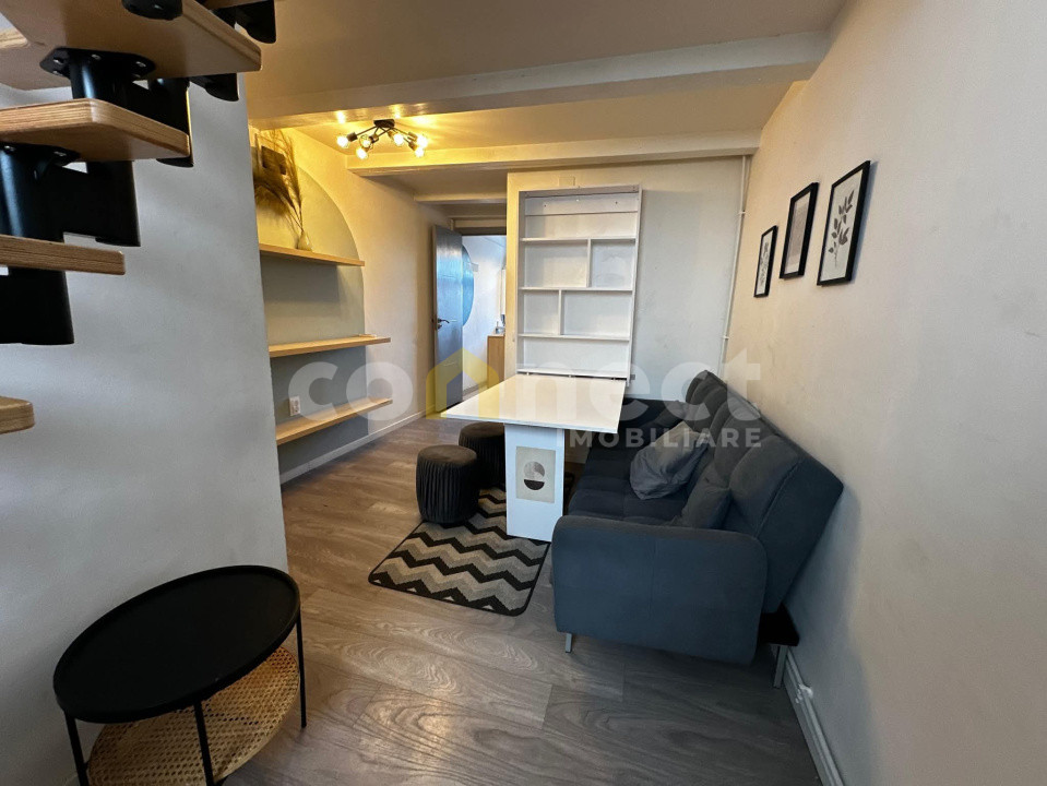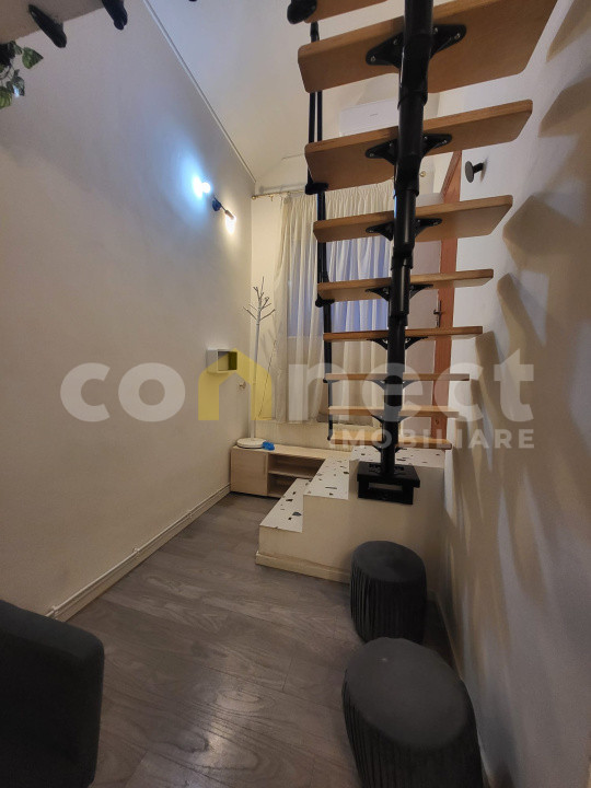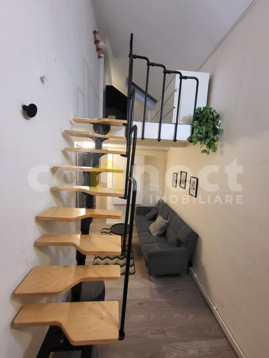 Vă propunem spre vânzare un apartament tip loft, situat într-o casă cu mai multe apartamente, amplasată într-o curte privată, cu drept de parcare și cotă-parte din teren – ideal pentru investiție sau locuință de student.