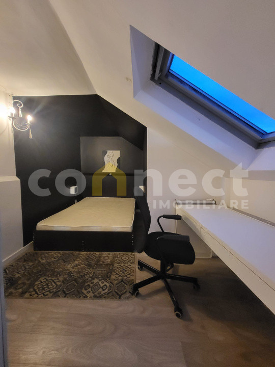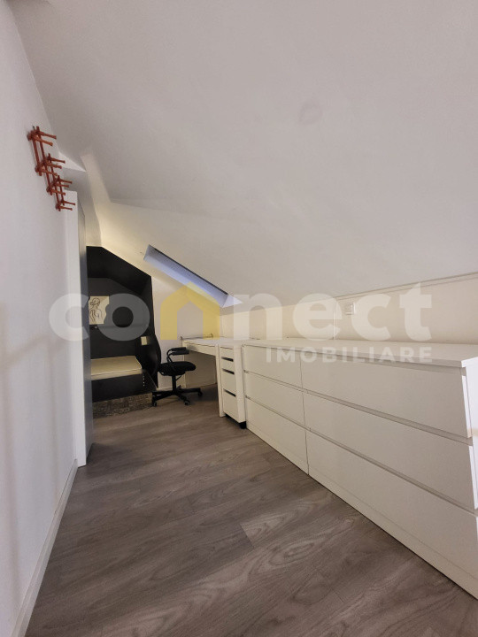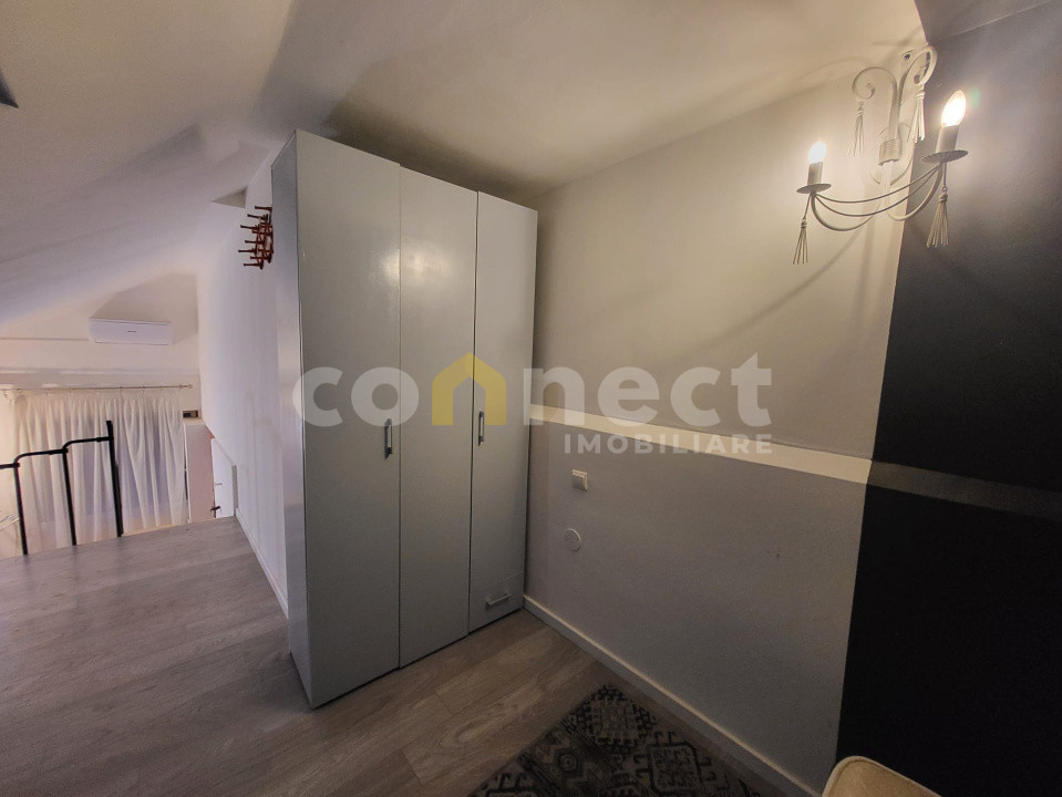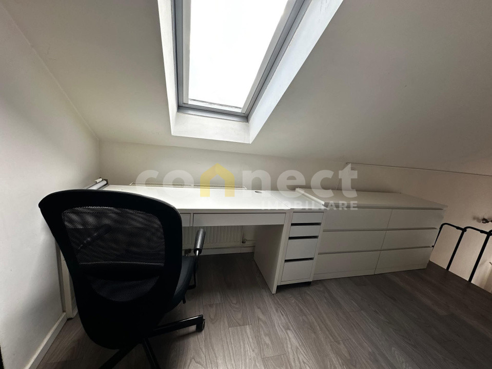 - la nivelul 2: 10,12 mp utili avem acces prin scară interioară, specifică stilului loft, zonă de dormit si un spațiu amenajat ca zonă de lucru/birou.