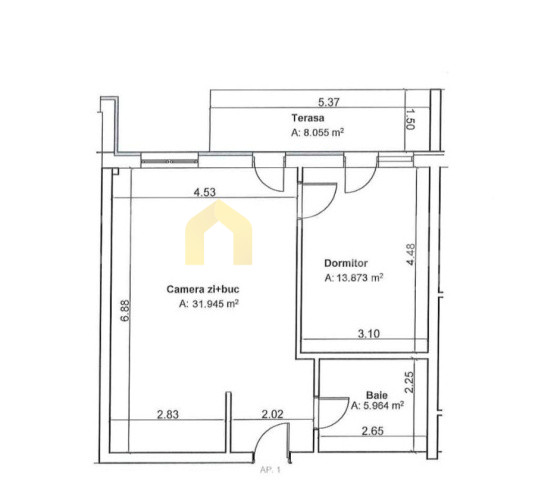 Apartamentul dispune de o suprafață utilă de 52 mp, este împărțit într-un living generos cu bucătărie, un dormitor, o baie prevăzută cu vană și un balcon de 8 mp cu priveliște spre oraș cât și spre pădure. Este compartimentat astfel încât să aloce o nișă pentru depozitare haine când ajungi acasă, cât și un perete care desparte partea de living de partea de intrare. Finisat cu pervazuri de înaltă calitate, din travertin.