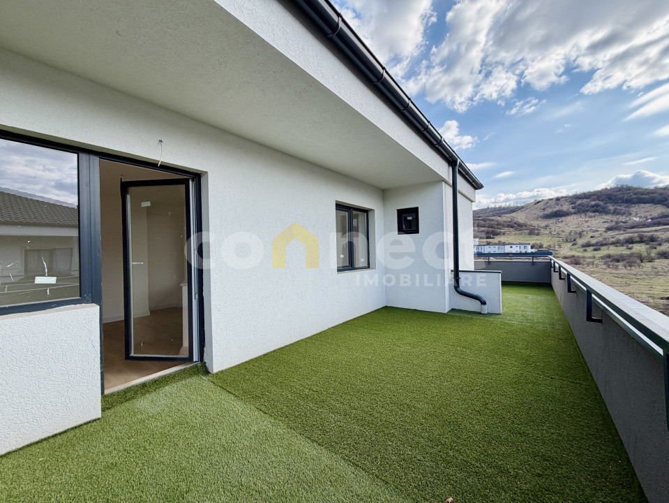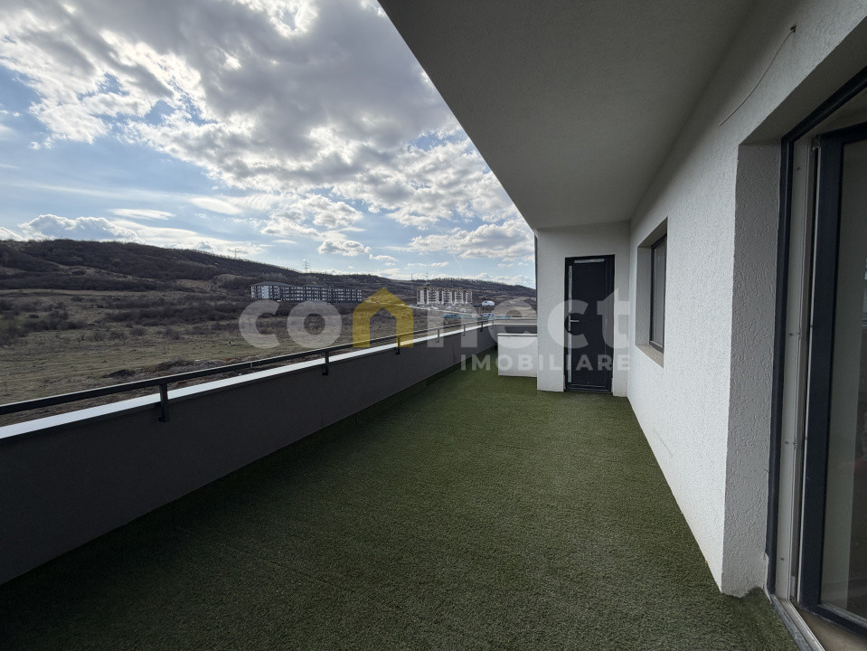 Dispune de o terasă generoasă de 46 mp, în formă de "L" așadar oferă panoramă spre zone verzi și pădure cât și spre oraș. De asemenea, dispune de o boxă de 5 mp, dotată cu geam pentru aerisire naturală.