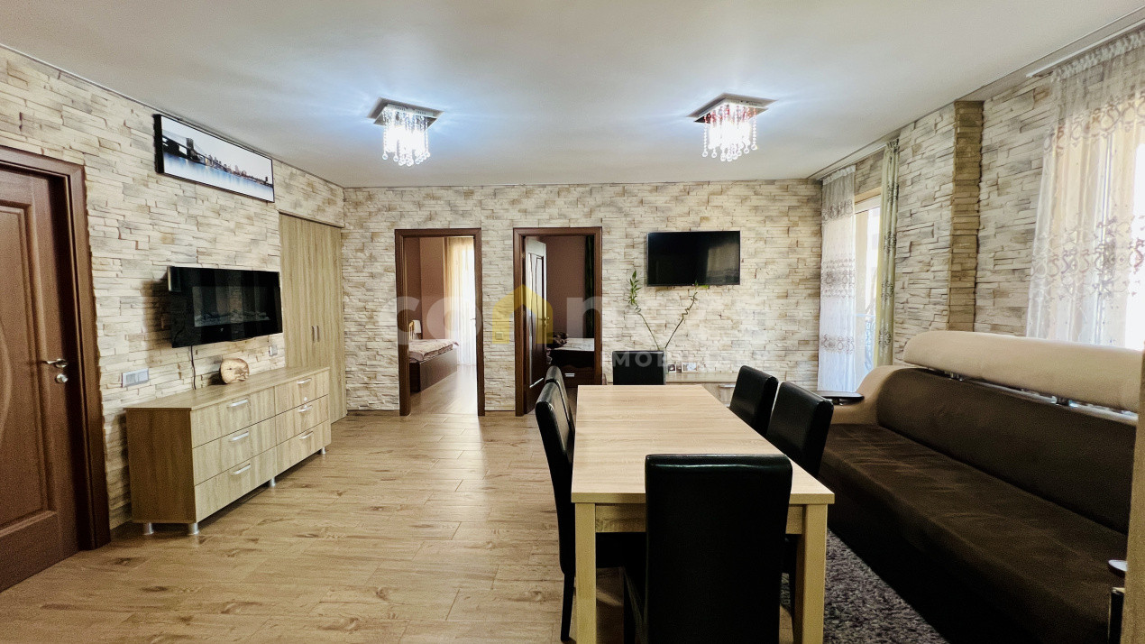La intrare se află un hol amenajat cu spațiu pentru depozitare papuci și cuier. Livingul este spațios și luminos, cu acces la un balcon de 7 mp. Bucătăria este separată și include un mic spațiu pentru servirea mesei, de asemenea dispune de o masă generoasă in living pentru mese cu prietenii și familia.
