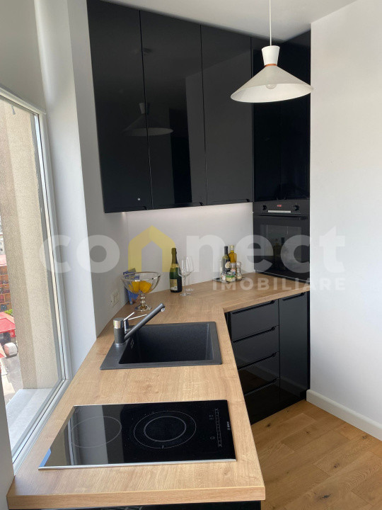 Bucătărie: frigider cu congelator, masina de spalat vase, cuptor, plita electrica, cuptor cu microunde, iluminat cu senzor de mișcare.