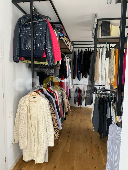 Dressing: compartimentarea hainelor la vedere pe cadre metalice suspendate, terasa.