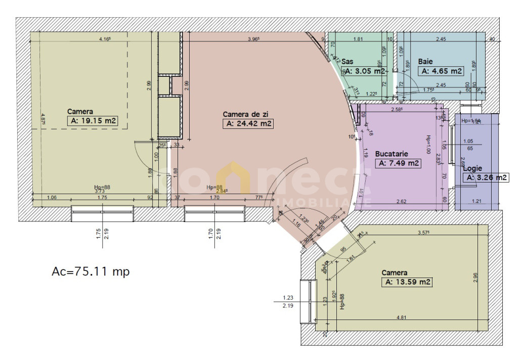 Înălțime generoasă a camerelor, aproximativ 4 metri, care conferă un spațiu aerisit și confortabil.