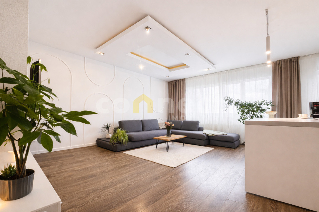 Spațiul este luminos, aerisit și amenajat modern, cu un living generos open-space care se leagă natural de bucătărie.