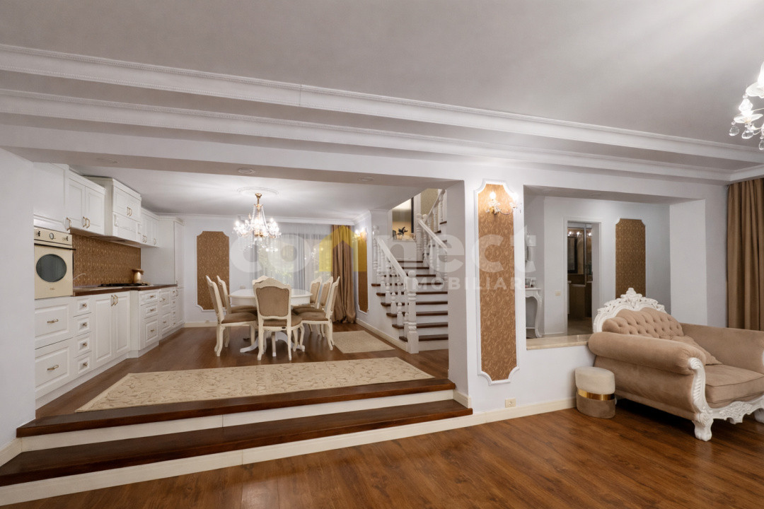 Disponibilă la prima închiriere, această proprietate din Feleacu îmbină elegant stilul clasic cu accente moderne și oferă un ambient cald, primitor, ideal pentru o familie care își dorește confort, intimitate și spațiu generos.