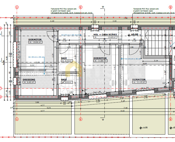 -- etaj cu 3 dormitoare (unul cu dressing si baie proprie), baie pe hol