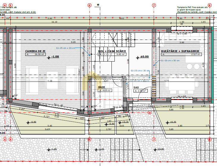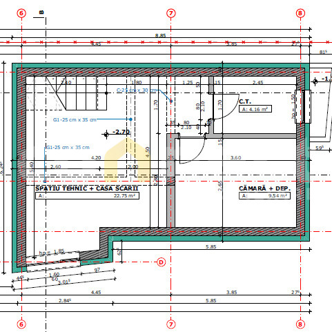 -- demisol cu spațiu de depozitare, spălătorie, cameră tehnică și cămară