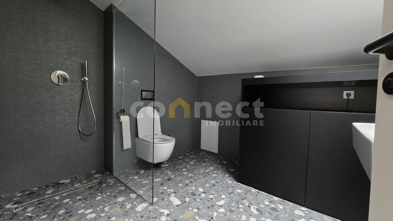 Incaperea beneficiaza de foarte multe geamuri si datorita inaltimii, senzatia este ca are mai multi mp. Are o baie proprie.