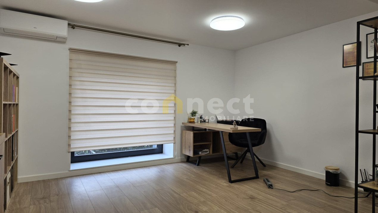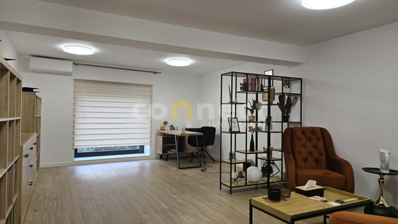 Imobilul este compartimentat eficient și cuprinde hol de acces, baie, o nișă destinată bucătăriei și o încăpere open space, ideală pentru organizarea zonei principale de lucru. Configurația permite amenajări flexibile, fiind potrivită pentru birou clasic, cabinet de consultanță, activități administrative sau servicii profesionale.