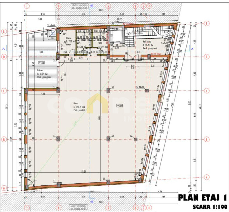 - suprafață generoasă și flexibilă, potrivită pentru birouri open-space sau compartimentate;