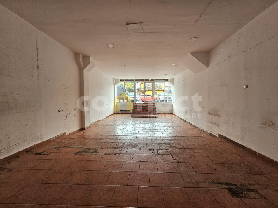 Se oferă spre închiriere un spațiu comercial cu suprafața de 100 mp, situat într-o zonă intens circulată, cu vizibilitate foarte bună și vitrină generoasă la stradă.