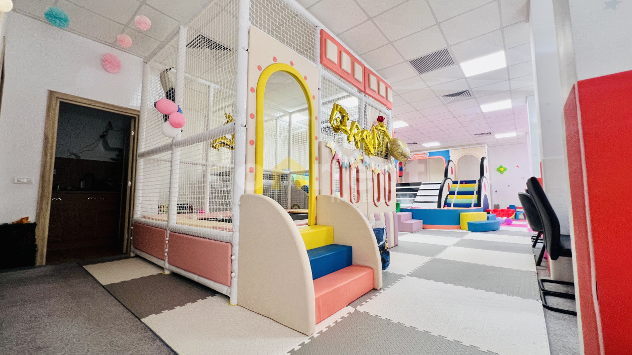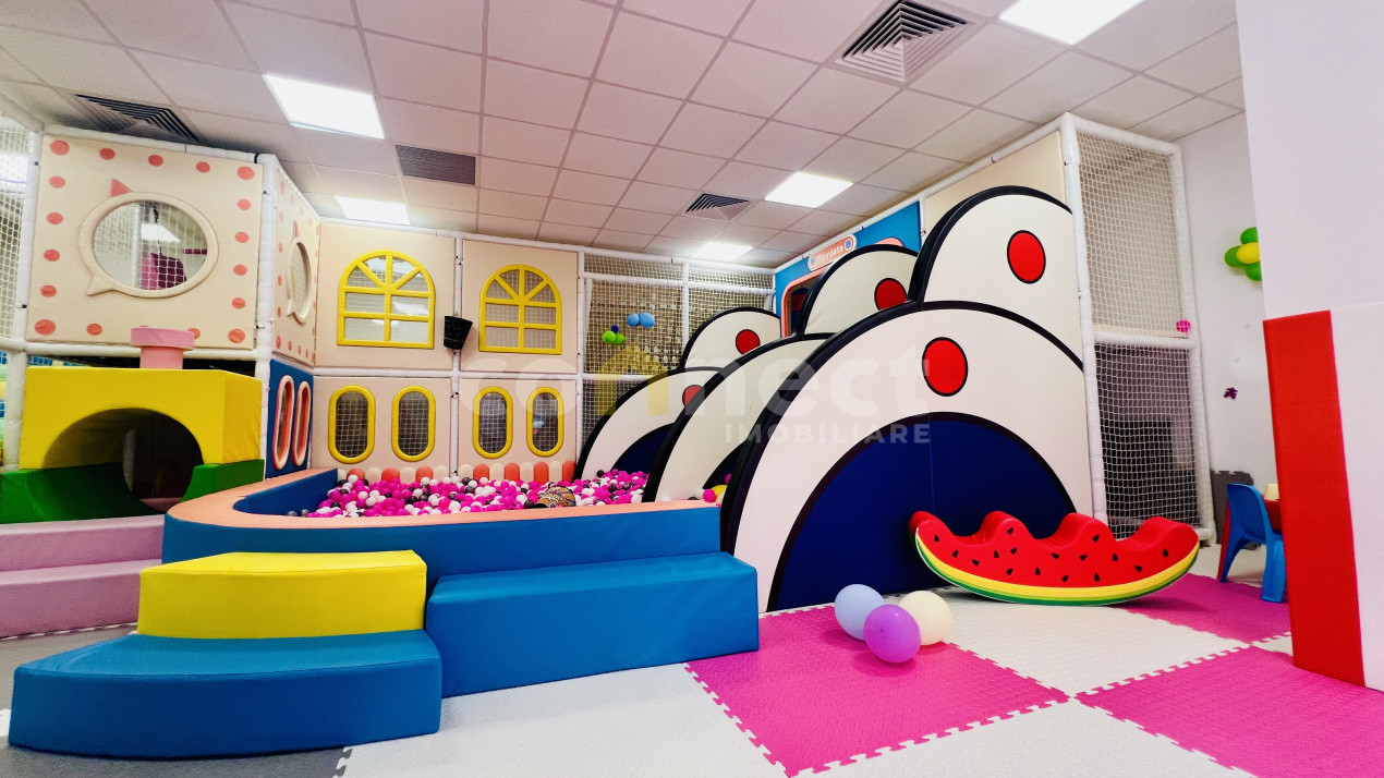 În prezent, imobilul găzduiește o afacere activă, un spațiu de joacă pentru copii, și este rezervat până la finalul anului pentru evenimente, ceea ce oferă potențialul de preluare a unei activități deja funcționale, cu clientelă fidelă și flux de venit constant.