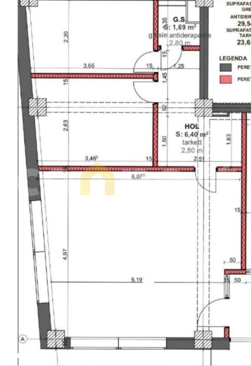 Acesta are suprafață utilă de 55mp, 3 încăperi, hol si un grup sanitar.