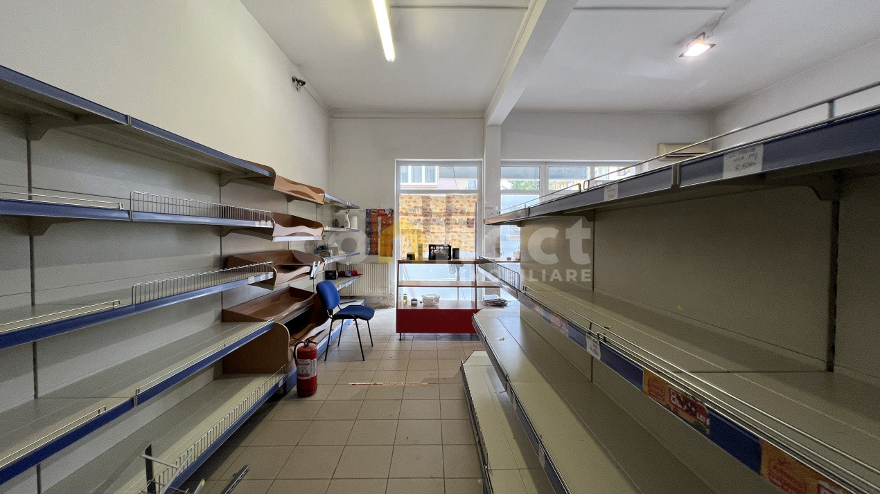 Zona principală comercială: 65 mp – situată la stradă, cu vitrină generoasă pe două laturi, perfectă pentru vizibilitate și expunere
